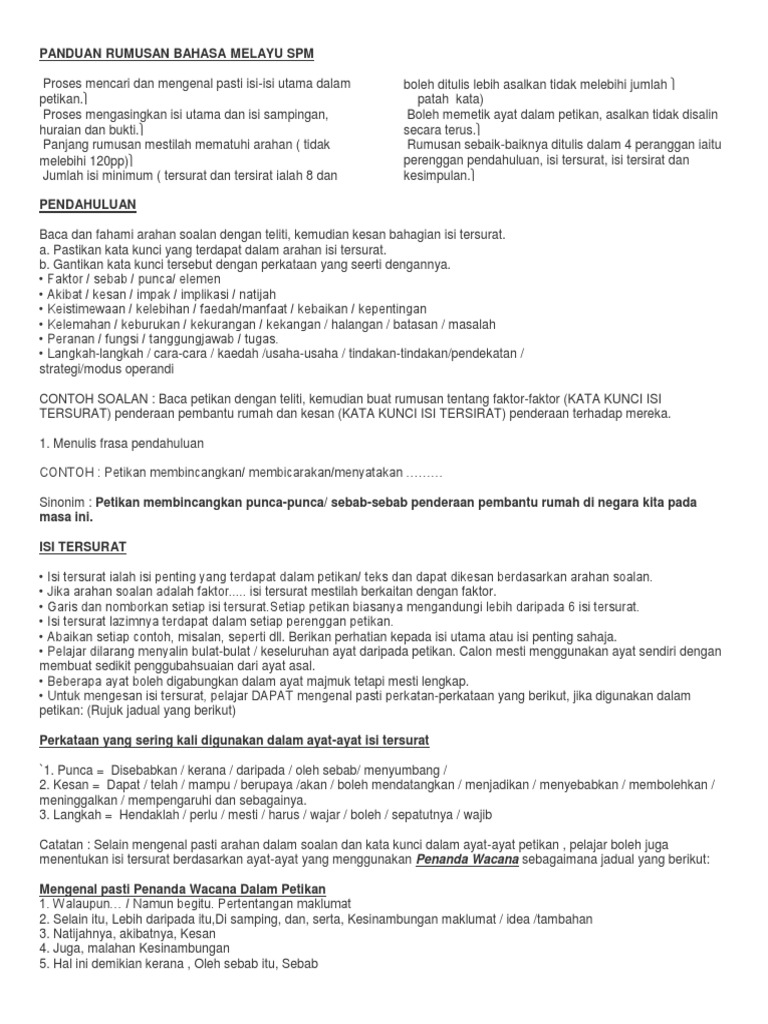 Kesimpulannya, kerajaan dan masyarakat harus berganding bahu agar masalah penyalahgunaan dadah dapat diatasi. Berikutnya, peluang melayakkan diri untuk memasuki institut pengajian tinggi awam tipis. In rujukan spm bahasa melayu (bm) contoh rumusan lengkap spm bahasa melayu (bm) sebagai panduan pelajar untuk menjawab soalan berkaitan rumusan dan pemahaman petikan umum. For more information and source, see on this link : Teknik cara menulis rumusan yang baik itu mudah.